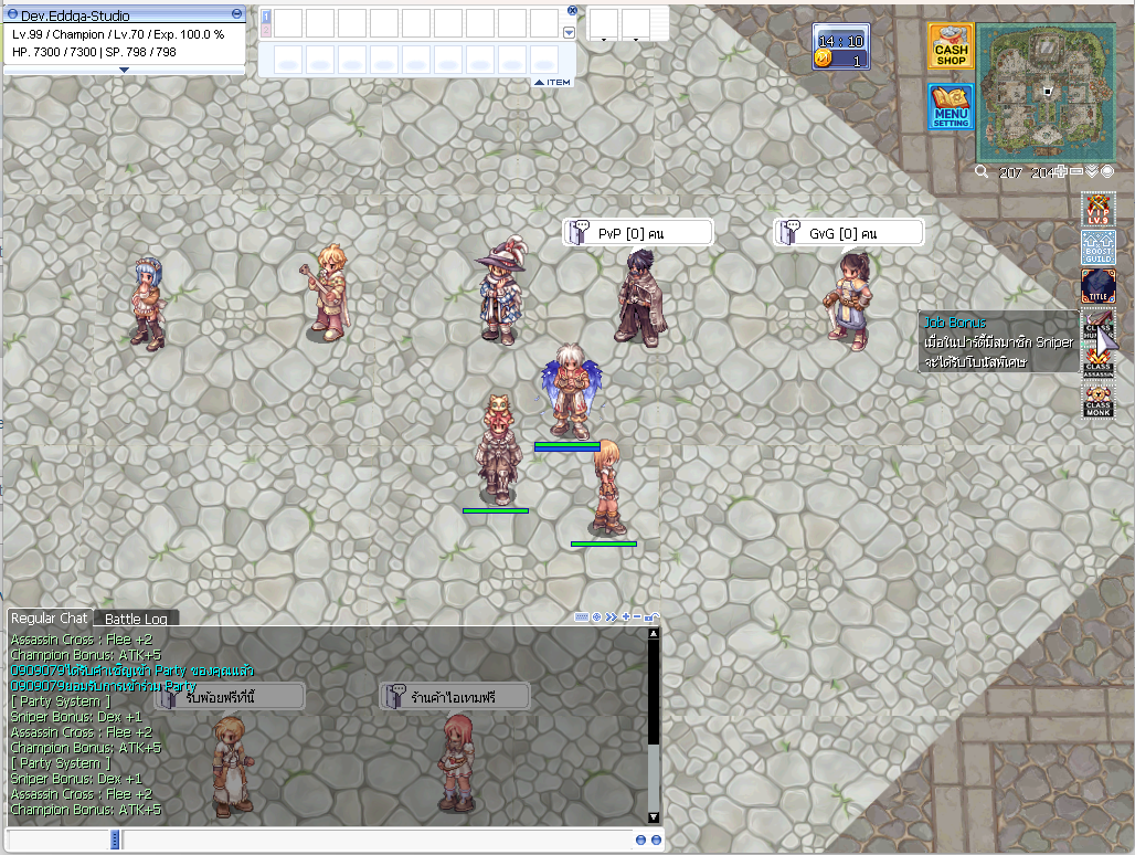 หมายเหตุ : ถ้าสมาชิกของปาร์ตี้ครบ 12 คน จะได้รับโบนัสพิเศษ เพิ่ม Aspd +1 และ All Stats +1